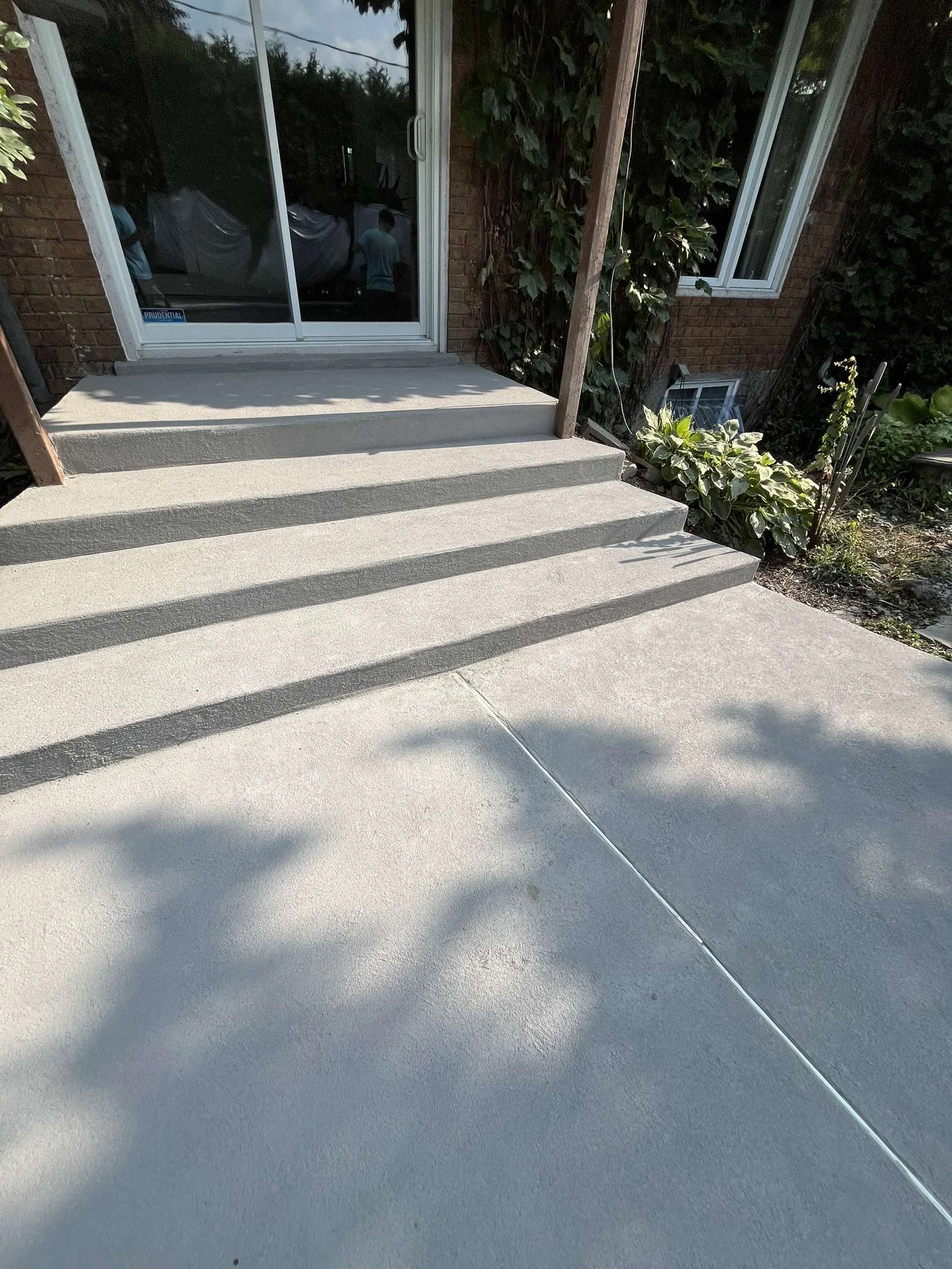 Acrylic coating is ideal for resurfacing old concrete, providing a safe and durable finish. It uses a two-layer system: a base layer with mesh and metal fibers for strength, and a top layer with a sanded textured finish in the colour of your choice. This method rejuvenates concrete surfaces, ensuring stability and improved safety.